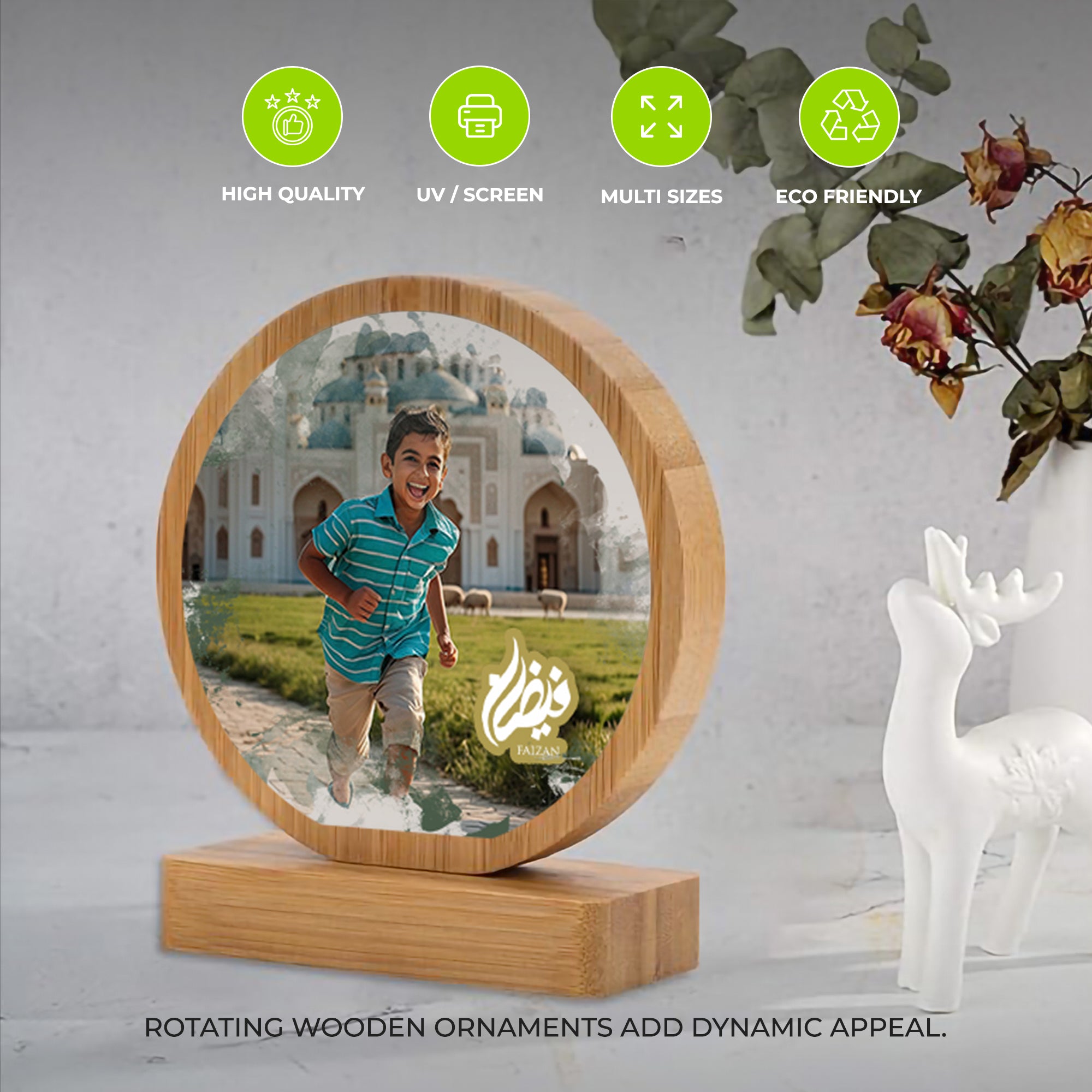 - Unique Design: Rotating wooden ornaments add dynamic appeal.